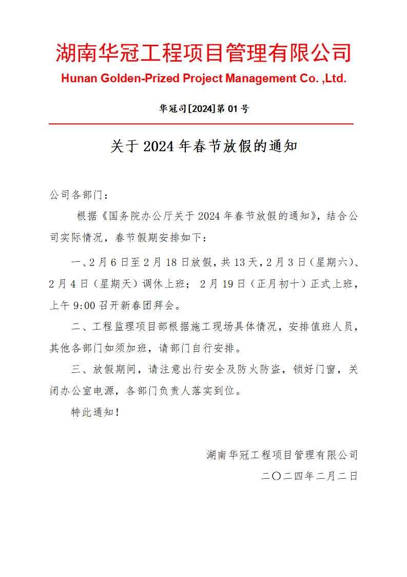 2024年春節(jié)放假的通知